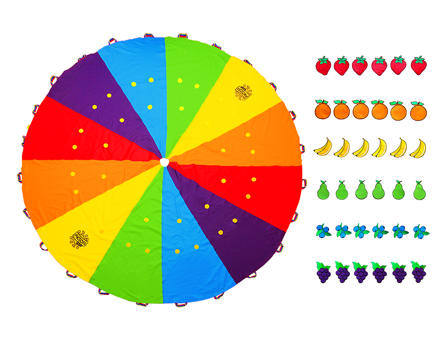 Znakomicie wspomaga rozwój koordynacji wzrokowo – ruchowej, ćwiczy refleks i spostrzegawczość, równocześnie umożliwia czerpanie radości płynącej z ruchu i przebywania w grupie.Chusta wykonana jest z wytrzymałego, wodoodpornego materiału łatwego do utrzymania w czystości, dzięki czemu nadaje się do korzystania na zewnątrz jak i w pomieszczeniach, chusta obszyta jest taśmą wzmacniającą oraz wyposażona jest w 24 uchwyty.Doskonała pomoc metodyczna. Wytrzymała, bezpieczna. Zestaw zawiera:Chustę z rzepami o średnicy 3m wzmacnianą taśmą i 24 uchwytamiowoce/rzepy: 36 sztuk (banan x6. pomarańcza x6. jabłko x6. jagody x6. winogrona x6. gruszka x6)praktyczny, kolorowy pokrowiec z uchwytemDzięki chuście edukacyjnej poszerzysz zakres zabaw i animacji, a nauka poprzez zabawę bedzie jeszcze bardziej przyjemna!