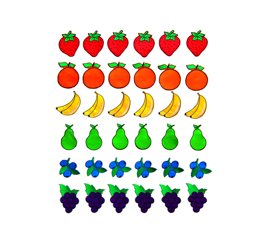 Dodatkowe elementy to zestaw owoców wykonanych z trwałego, kolorowego materiału z rzepem umożliwiającym przyczepianie i odpinanie na chuście. Kolorystyka owoców odpowiada kolorom na chuście, dzięki czemu nauka poprzez zabawę jest jeszcze łatwiejsza!