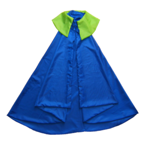 Strój zawiera pelerynę z kapturem.